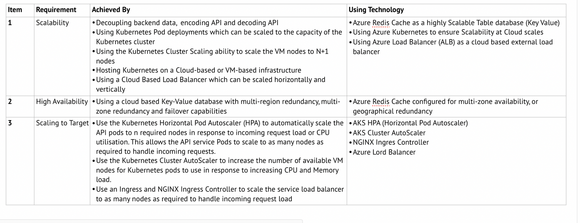 a) Terraform is used to create the AKS cluster, Redis cache service, Azure Load Balancer, DNS CNAME records. This code is versioned in a git repository
